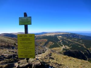 Joggingtour im Riesengebirge auf die Schneekoppe am 03.10.2013 - Bildimpressionen von Thomas SchmidtkonzVon Thomas Schmidtkonz Das Riesengebirge selbst gilt zwar noch als Mittelgebirge, hat aber schon etwas den Charakter eines Hochgebirges, ist also so ein Art Zwischending zwischen beiden. Natürlich ist es dabei besonders reizvoll die Schneekoppe (tschechisch Sněžka, polnisch Śnieżka) zu erklimmen, weil sie mit 1602 m Höhe der höchste Berg dieses Gebirges ist und man von ihr bei gutem Wetter einen grandiosen Rundblick hat. Sie ist außerdem der höchste Berg Tschechiens und auch vom ehemaligen Preußen. Diese Tour führte Gaby und mich zuerst vom knapp 800 m hoch